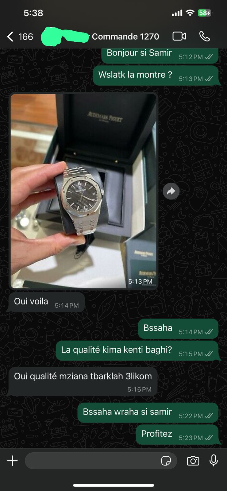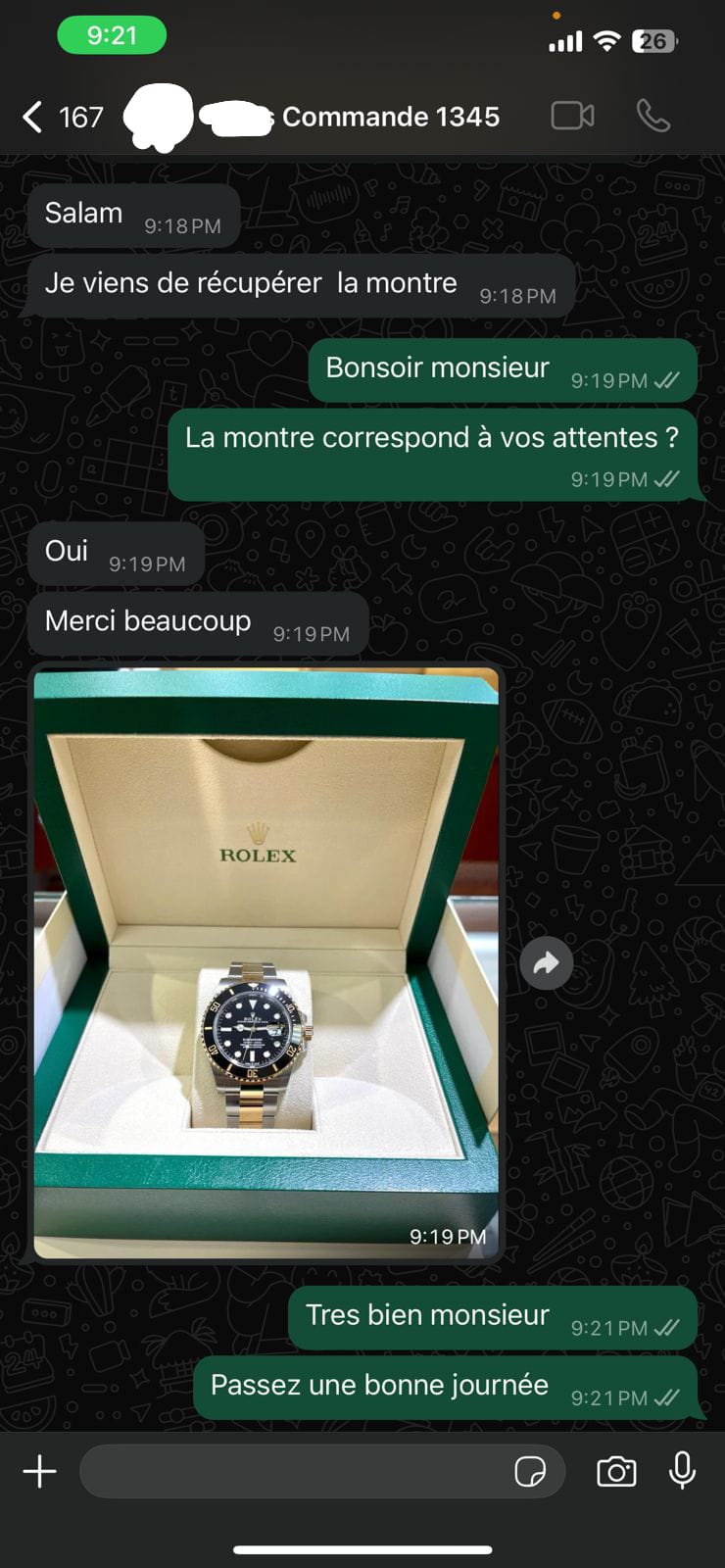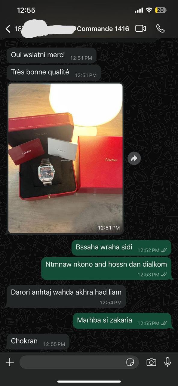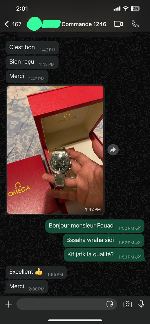 Avant d’expédier votre commande, nous vous contacterons pour confirmer les détails. Une fois validée, votre montre sera soigneusement préparée et livrée rapidement sous 24 heures.